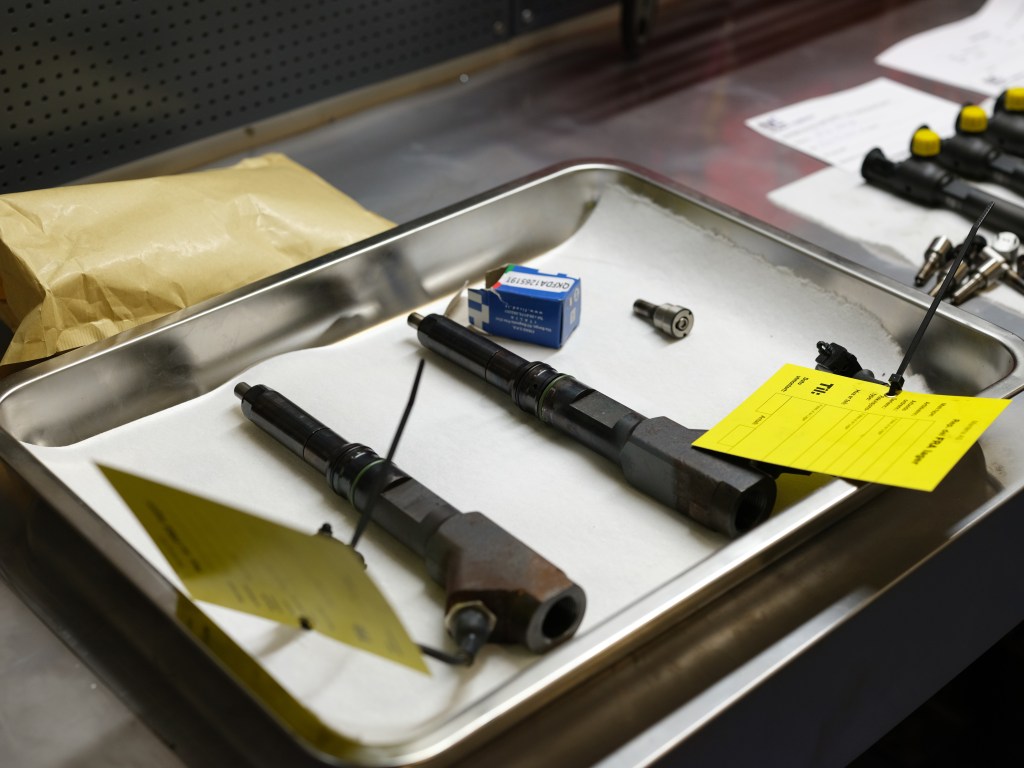 Vi overhaler og tester 2-trinns injektorer i vår testmaskin.
