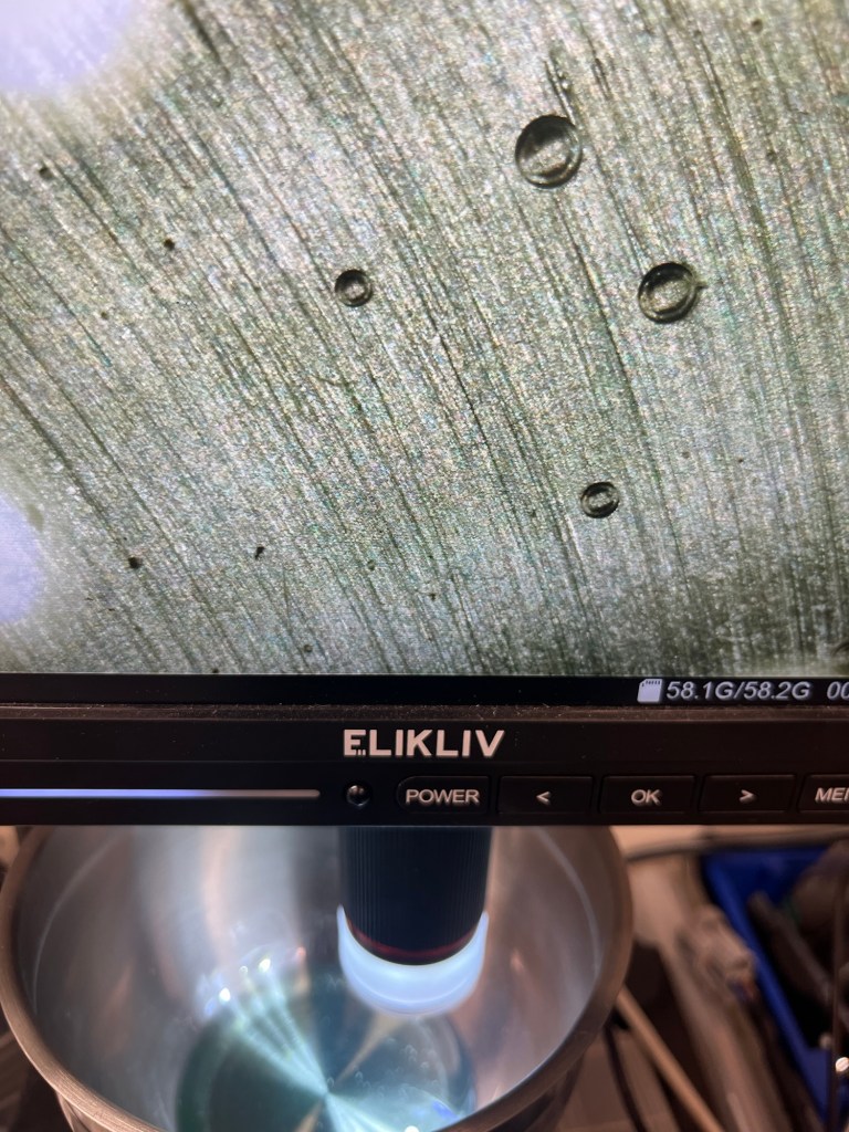 Prøven undersøkes mikroskopisk for å påvise fritt vann. For mer presis kvantifisering kan Karl Fischer-titrering benyttes.